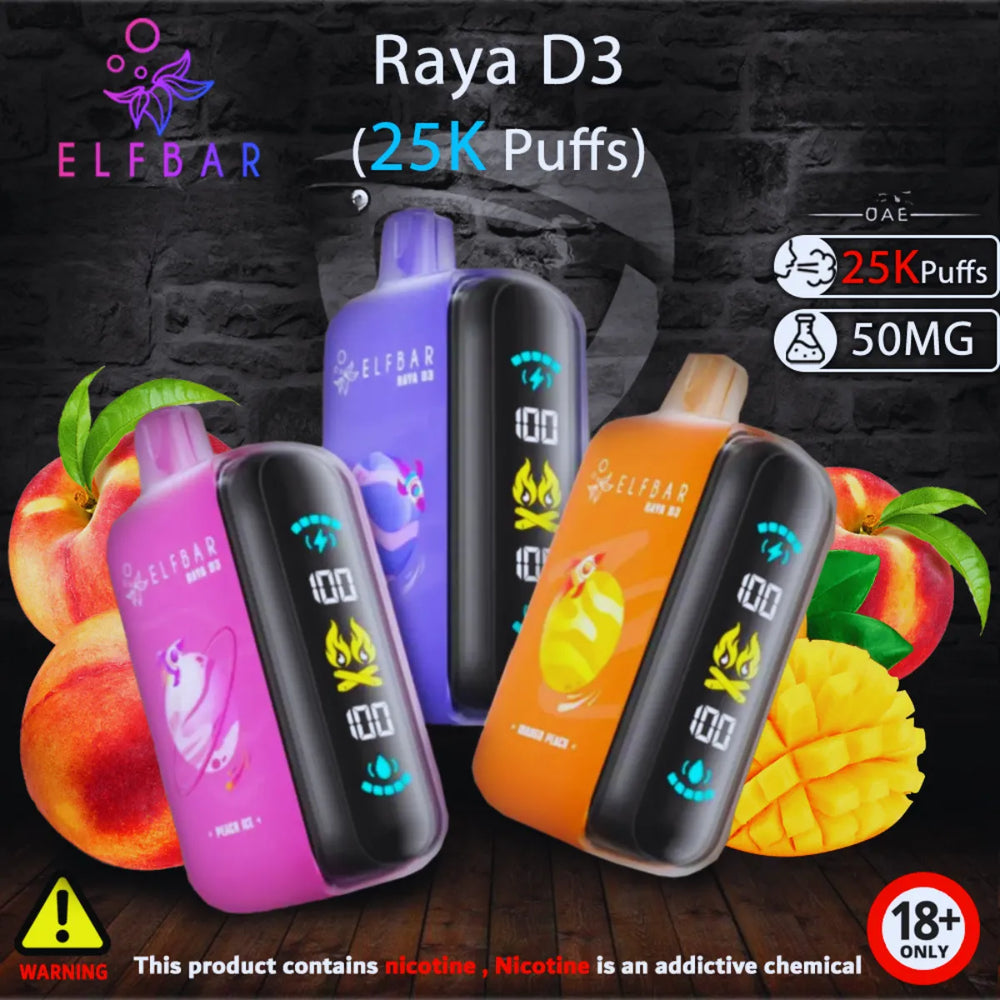 The Elf Bar Raya D3 25000 Puffs Disposable Vape is built for serious vapers who want maximum puff count, rich flavor, and premium hardware in one sleek device. With dual mesh coil technology, a powerful rechargeable battery, and 5% nicotine strength, this disposable delivers bold taste and smooth clouds for up to 25,000 puffs.