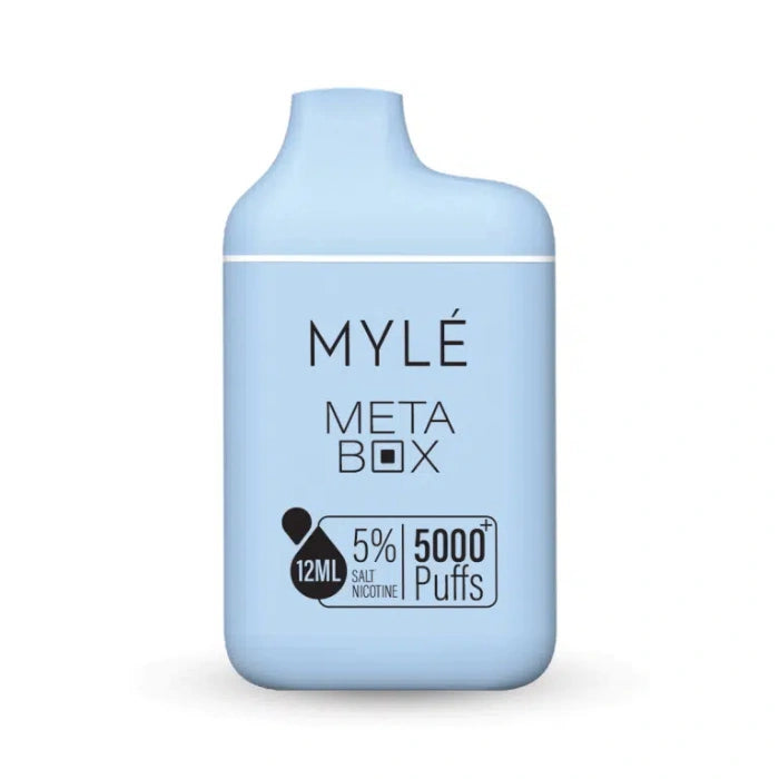 The MYLE Meta Box 5000 Puffs is a premium disposable vape that suits the users looking for a long lasting flavorful experience. Pre-filled with 12ml of e-liquid at 5% (50mg) tobacco-free salt nicotine, the device can produce around 5,000 puffs per device. It operates on the battery of 400mAh recharged and uses a mesh coil to enhance the vapor flavor. The MYLE Meta Box, available in Iced Mint, Red Apple, and Sweet Tobacco, satisfies all tastes.