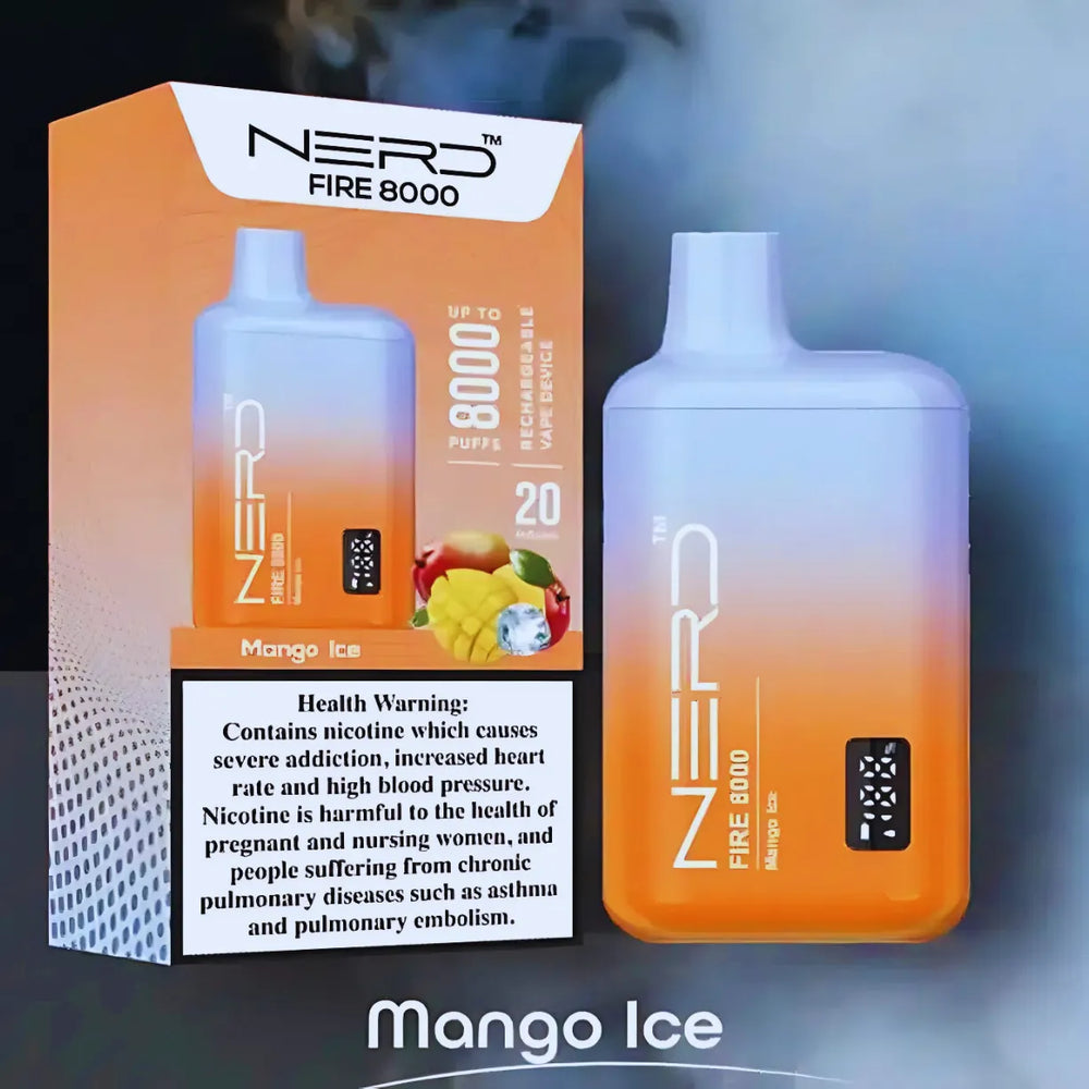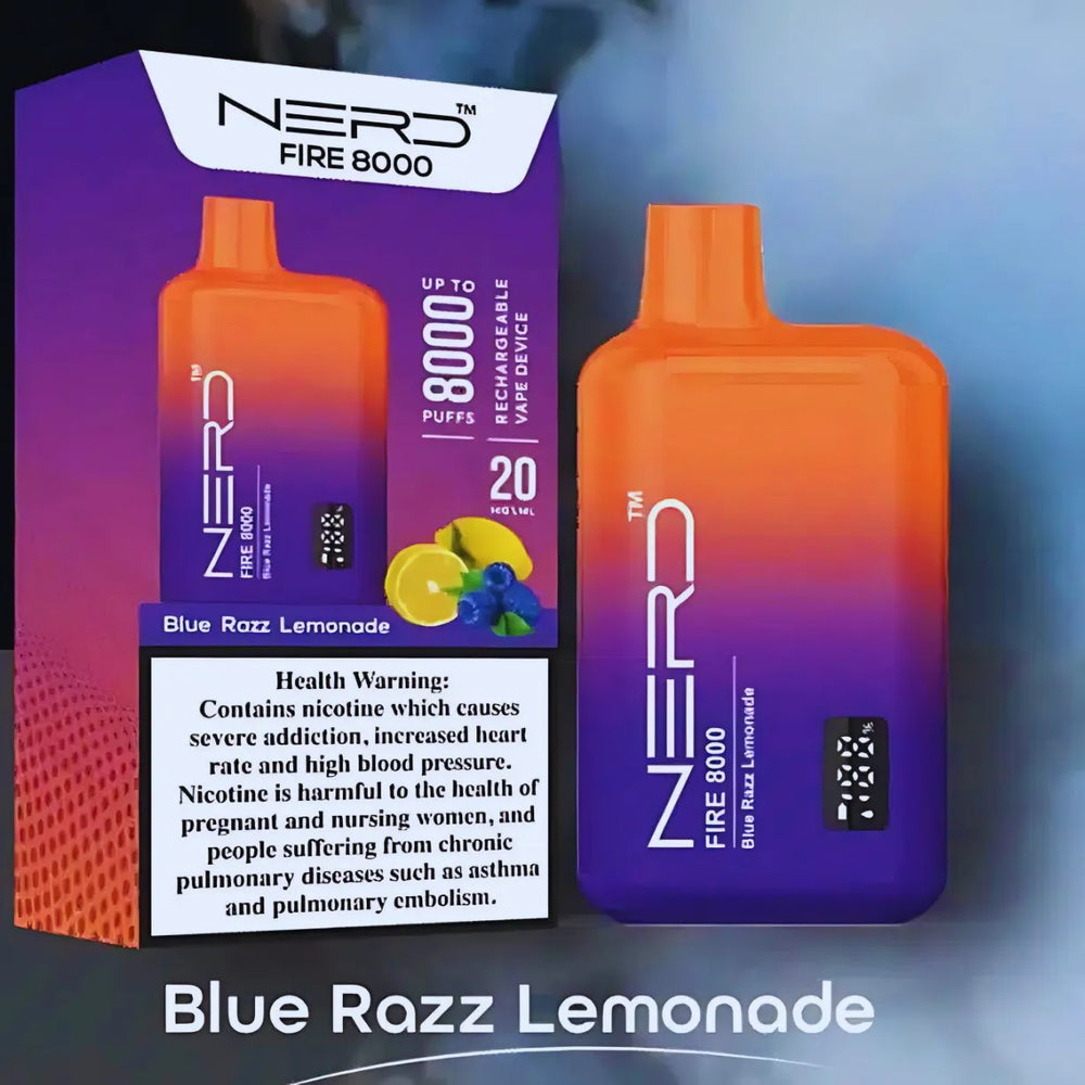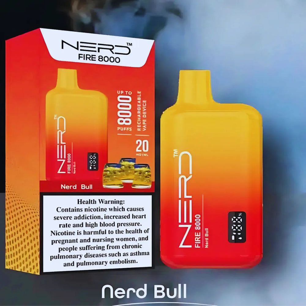 The NERD Fire 8000 Puffs is a long-lasting and flavorful high-capacity disposable vape device for users who appreciate that sort of experience. Pre-filled with 14ml of premium e-liquid available in 2% (20mg) nicotine strength, the device is good for around 8,000 puffs per unit. Built with a Type-C rechargeable 650mAh battery, this device ensures extra longevity and convenience. Using an advanced LCD display, this allows monitoring of both battery and e-liquid levels, further improving user experience.